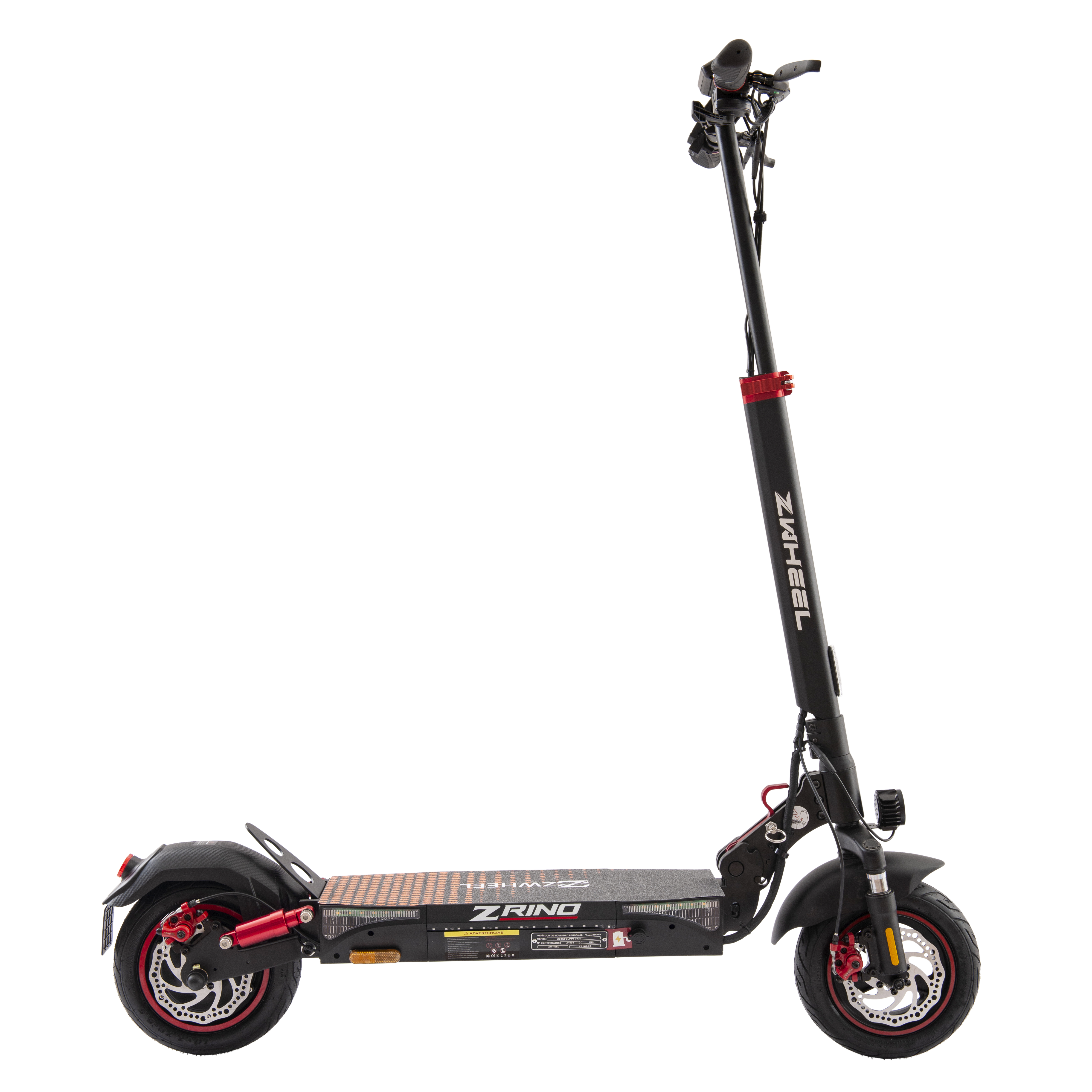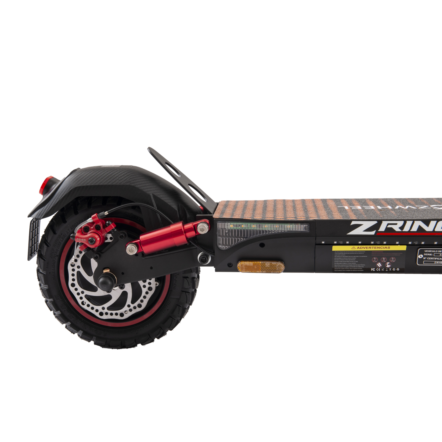 El patinete eléctrico Zrino está diseñado para ofrecer condiciones de seguridad adecuadas para la circulación fuera de carretera (off-road), como por ejemplo sus neumáticos todo terreno sin cámara, diseñados específicamente para el uso fuera de carretera. Presentan un diseño más robusto con una banda de rodadura agresiva para proporcionar tracción adicional en superficies irregulares y terrenos difíciles. Además, el Zrino, ofrece un sistema doble de suspensiones hidráulicas que absorben los golpes y las vibraciones del terreno, proporcionando una conducción más suave y cómoda y reduciendo la fatiga del usuario.